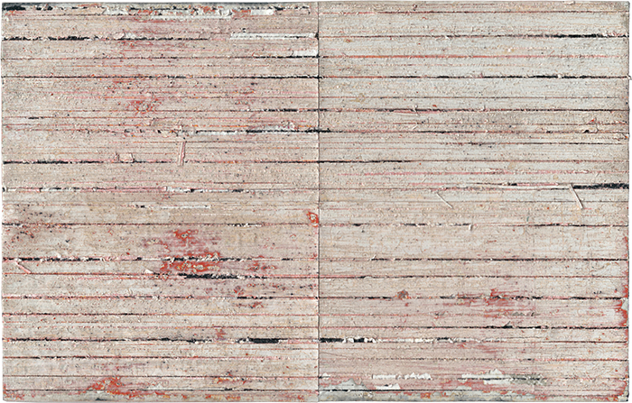 bone ash, pumice, ink, studio dust on manually scored, abraded,